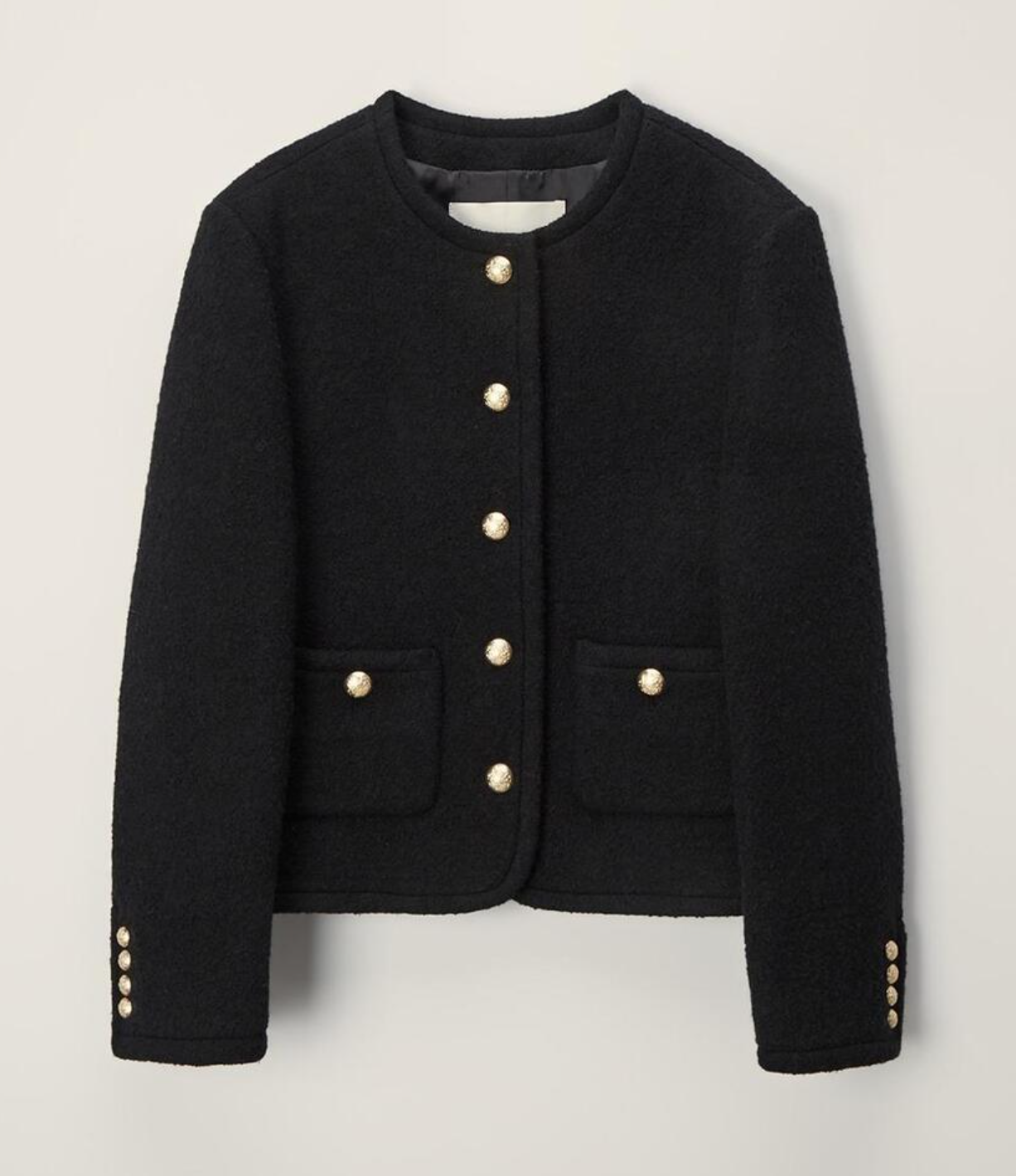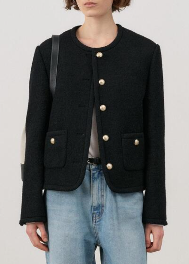 얇은 어깨패드와 몸판 전체 심지 부착으로 세련된 실루엣을 연출해 주며, 골드와 실버 버튼으로 포인트를 주었어요. 블랙, 그레이, 카멜 세 가지 컬러로 만나보실 수 있습니다.✨