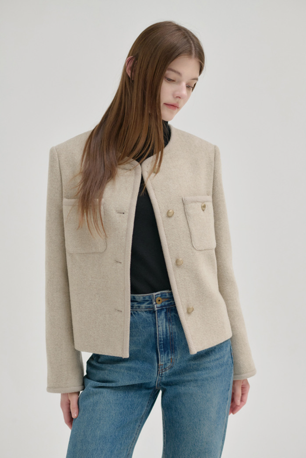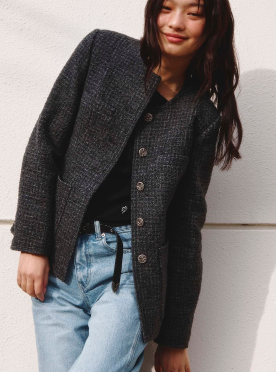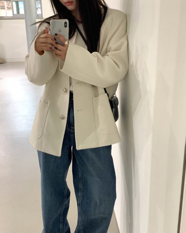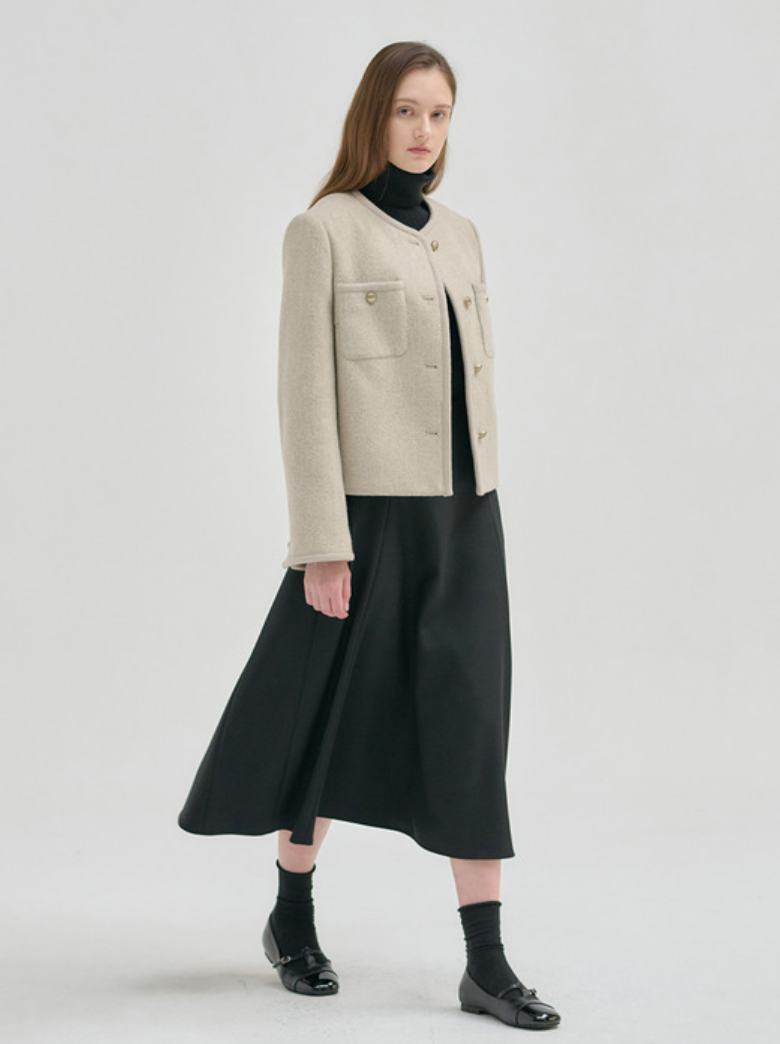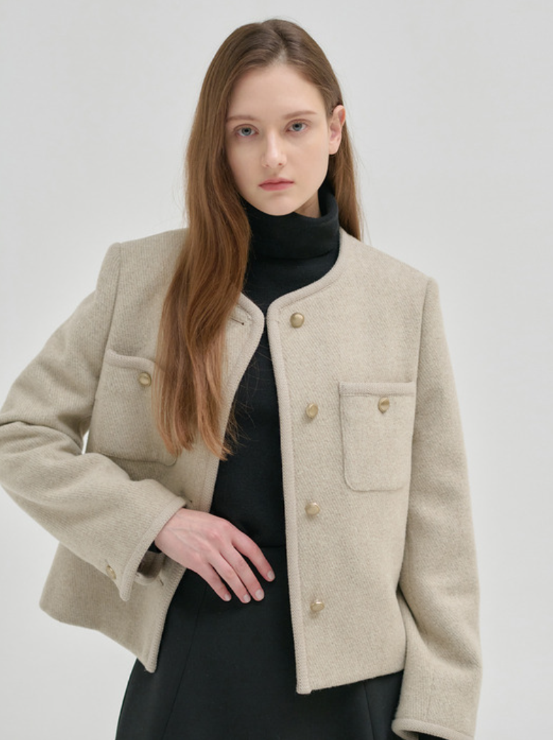 닐바이피의 트위드 자켓은 노란끼 없는 차분한 베이지 컬러로 두께감이 있어 초겨울까지 입을 수 있습니다. 결혼식 하객룩으로 격식을 갖추면서도, 일상에서는 캐주얼한 옷과 매치하여 세련된 룩을 연출할 수 있습니다. 빈티지한 금속 단추가 포인트가 되어, 단순한 옷차림에도 세련미✨를 더해줍니다.