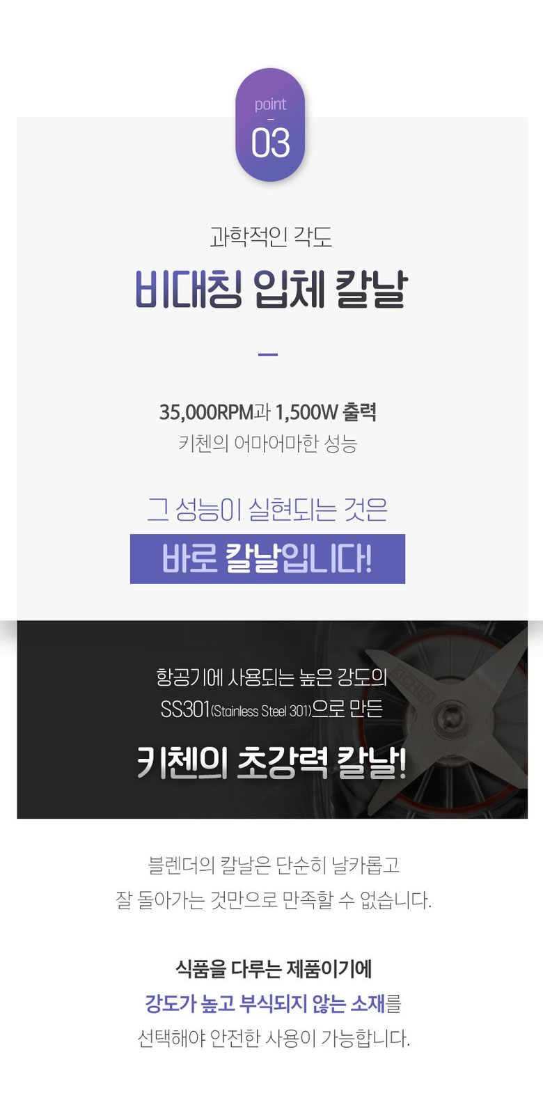 💬 첫번째로 소개해 드릴 제품은 키첸 초고속 진공 블렌더 믹서기입니다. 35,000RPM 고속 블렌딩 믹서기로 칼날이 더 빠르게 더 많이 회원함으로써 어떤 재료도 빠르고 미세하게 분쇄가 가능합니다. 초고속 분쇄로 영양소 파괴를 최소화하고 더욱 곱고 부드럽게 블렌딩하여 맛과 목넘김까지 최상으로 높여주는 제품입니다. 또한 쉽지 않은 얼음 분쇄까지 가능하여 스무디, 얼음빙수, 얼음육수를 만들 수 있습니다. 스프, 이유식, 죽 등 간편하게 100℃ 가열 조리도 가능합니다. 세척모드를 지원하여 원터치로 간편하게 세척할 수 있습니다. 소음저감 덮개가 있어서 소음을 최소화 시켜줍니다.