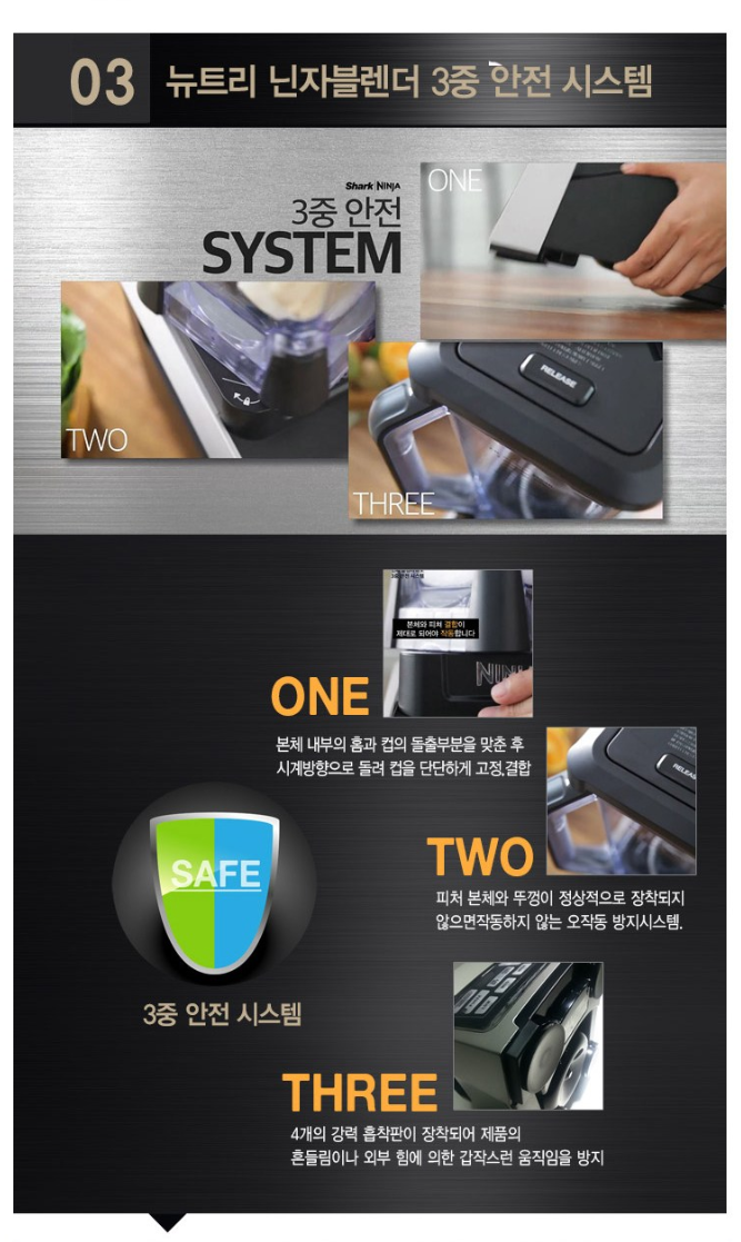 💬 두번째 소개해 드릴 제품은 뉴트리닌자 AUTO IQ 블렌더입니다. 미국 6중 입체 칼날로 단단한 재료, 질긴 재료 모두를 강력하게 분쇄해 주고 다양한 기능이 원터치로 버튼 한번에 작동됩니다. 2마력의 강력한 파워로 재료를 부드럽게 분쇄해 주고 3중 안전 시스템이 갖추어져 있어 안심하고 사용할 수 있습니다. 모터 가열 방지를 위한 오토 쿨링 시스템이 내장돼 있어 과열되는 것을 방지해 줍니다. 색상은 블랙실버 색, 버튼도 미국식 스타일이라 주방을 모던하고 세련되게 연출해 주어 인테리어 효과까지 더해 줍니다.