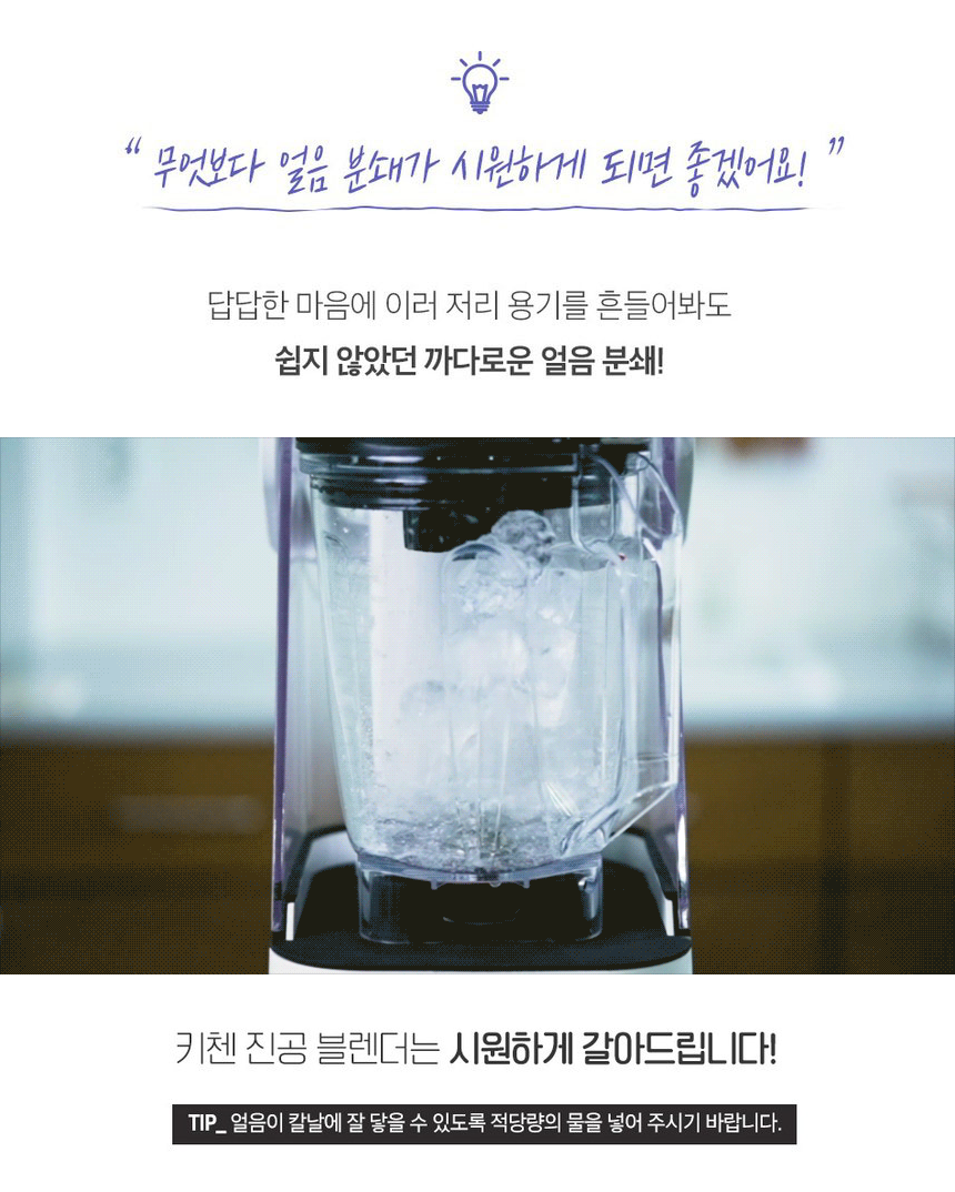 💬 첫번째로 소개해 드릴 제품은 키첸 초고속 진공 블렌더 믹서기입니다. 35,000RPM 고속 블렌딩 믹서기로 칼날이 더 빠르게 더 많이 회원함으로써 어떤 재료도 빠르고 미세하게 분쇄가 가능합니다. 초고속 분쇄로 영양소 파괴를 최소화하고 더욱 곱고 부드럽게 블렌딩하여 맛과 목넘김까지 최상으로 높여주는 제품입니다. 또한 쉽지 않은 얼음 분쇄까지 가능하여 스무디, 얼음빙수, 얼음육수를 만들 수 있습니다. 스프, 이유식, 죽 등 간편하게 100℃ 가열 조리도 가능합니다. 세척모드를 지원하여 원터치로 간편하게 세척할 수 있습니다. 소음저감 덮개가 있어서 소음을 최소화 시켜줍니다.