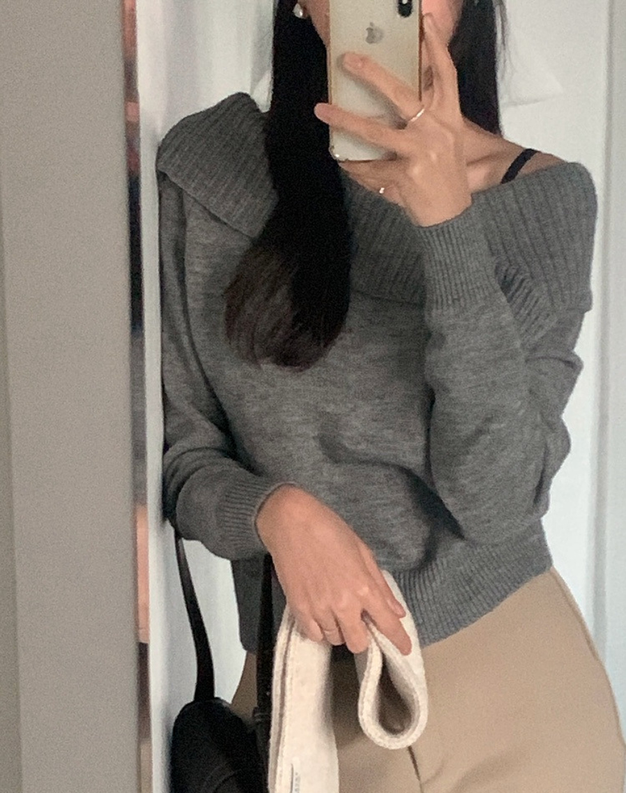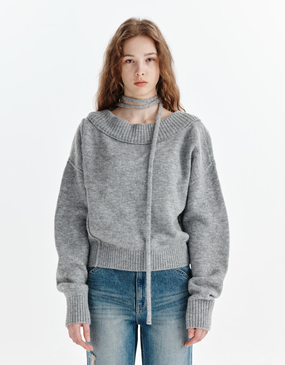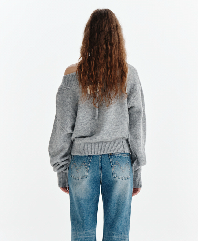 BEST 5. Matin Kim - OFF SHOULDER STRING KNIT PULLOVER IN GREY