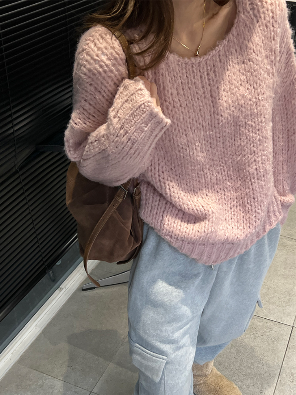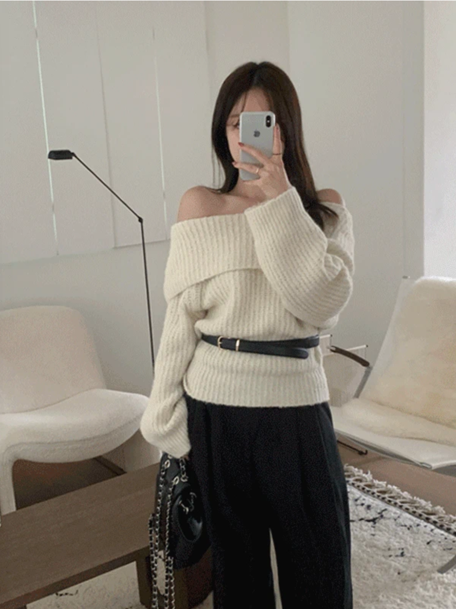 ☃️ 도톰한 두께감의 포근함이 가득한 오프숄더 니트예요. 여유로운 핏과 긴소매 기장으로 여리여리한 느낌을 연출할 수 있답니다. 벨트로 포인트를 주면 또 다른 매력의 스타일링이 가능해요.