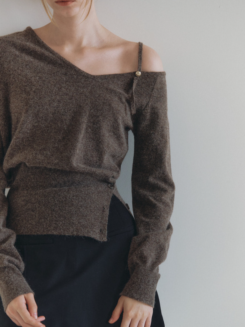 👉 button slit off-shoulder knit 보러가기