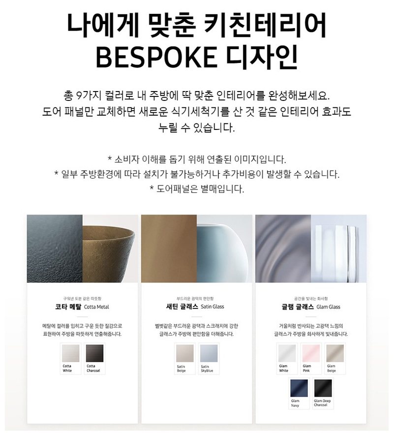 세번째 추천해 드릴 제품은 삼성전자 비스포크 식기세척기 입니다. 비스포크하면 역시 디자인인데요. 깔끔하고 모던한 디자인이 특징으로 신혼 부부들에게 인기가 좋습니다. 다양한 컬러와 제질을 선택할 수 있는 것이 장점입니다.