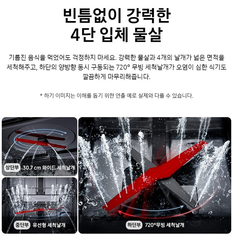 99.9%살균 기능과 4단 입체물살, 한국인 맞춤 코스, 스팀불림옵션, 100℃ 열풍건조, 젖병코스, 수저통 등이 특징인 제품입니다.
