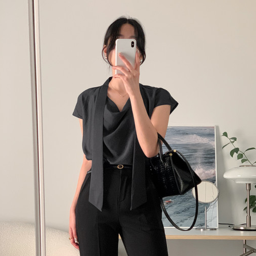 Best10. 사색 - 모네트 여름 하객룩 타이 반팔 블라우스