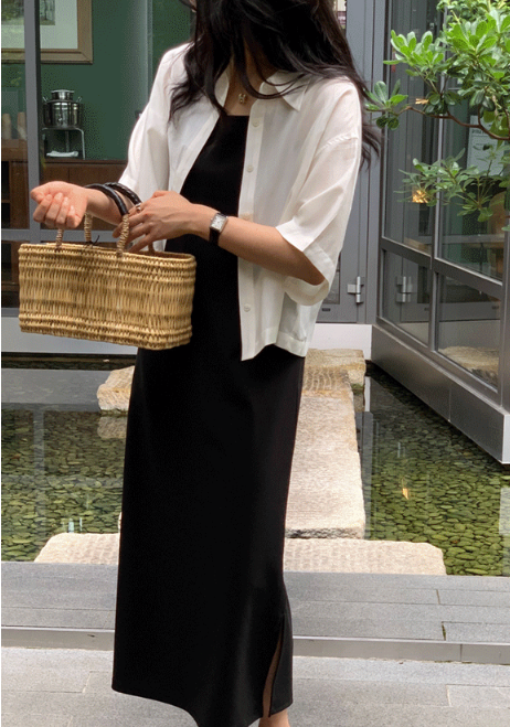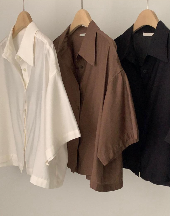 멜로즈무드의 하프 기장 셔츠블라우스는 미니멀하면서도 세련된 느낌을 줍니다. 레이온과 텐셀 혼방의 매끈한 원단감이 느껴져 실제로도 매우 세련된 느낌이었어요. 여유롭게 떨어지는 루즈한 핏은 군살을 자연스럽게 커버해 주며, 하프 소매로 팔뚝도 커버할 수 있어서 더욱 날씬해 보였어요. 추가로 경쾌한 크롭 기장으로 트렌디함까지 더했네요. 이 제품은 단독으로 입어도 멋스럽고, 이너나시나 원피스 위에 걸쳐 입어도 활용도가 높은 제품입니다.