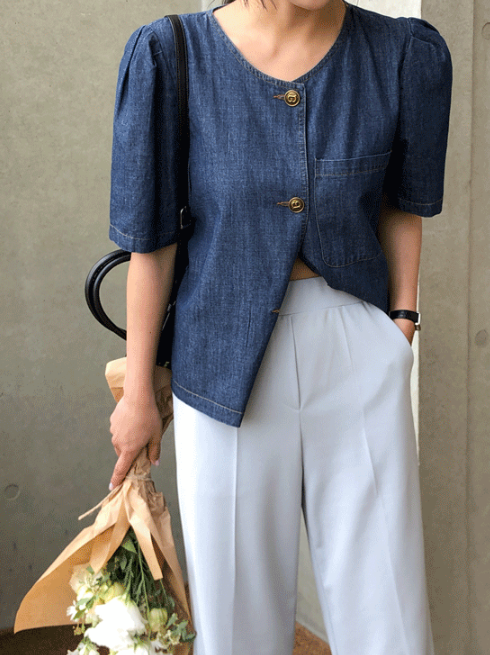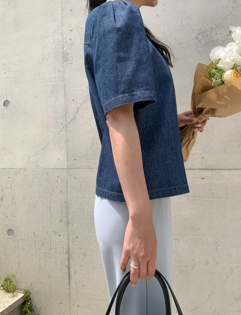Best6. 크러쉬제이 - 벨로크 데님 퍼프 블라우스