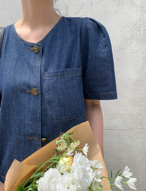 크러쉬제이의 데님 블라우스는 언제든지 어울리는 데님 소재로 만들어져서, 두껍지도 얇지도 않은 딱 좋은 두께감의 코튼 소재감이 편안함을 더해줍니다. 노카라 디자인이라서 다양한 옷들과도 잘 어울리고, 퍼프 슬리브가 여성스러운 감성을 한층 더해줘요. 바스트 부분의 포켓은 실용적이어서 일상생활에서도 편리하게 사용할 수 있습니다.