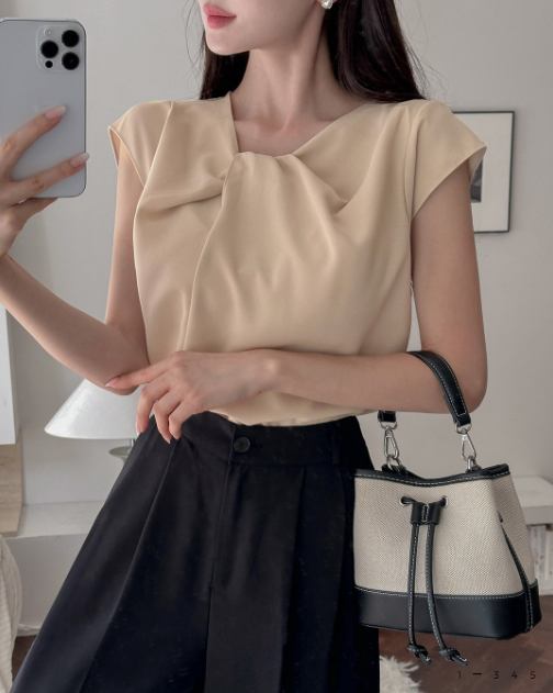 Best8. 메이빈스 - 람 캡소매 꼬임 블라우스