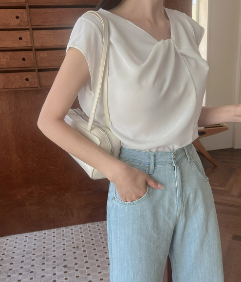 이 블라우스는 여리여리하고 단정한 느낌이 가득해요. 출근룩은 물론 데이트룩이나 격식 있는 자리에도 잘 어울리는 아이예요. 넥 라인의 꼬임 디테일과 사선으로 디자인된 소매가 우아한 느낌을 더해주고, 고급스러운 은은한 광택이 나는 플리에스터 원단으로 제작돼 퀄리티를 높였어요. 오픈 클로징 없이도 쉽게 탈착용할 수 있는 이지한 디자인이라 사용하기도 편해요.