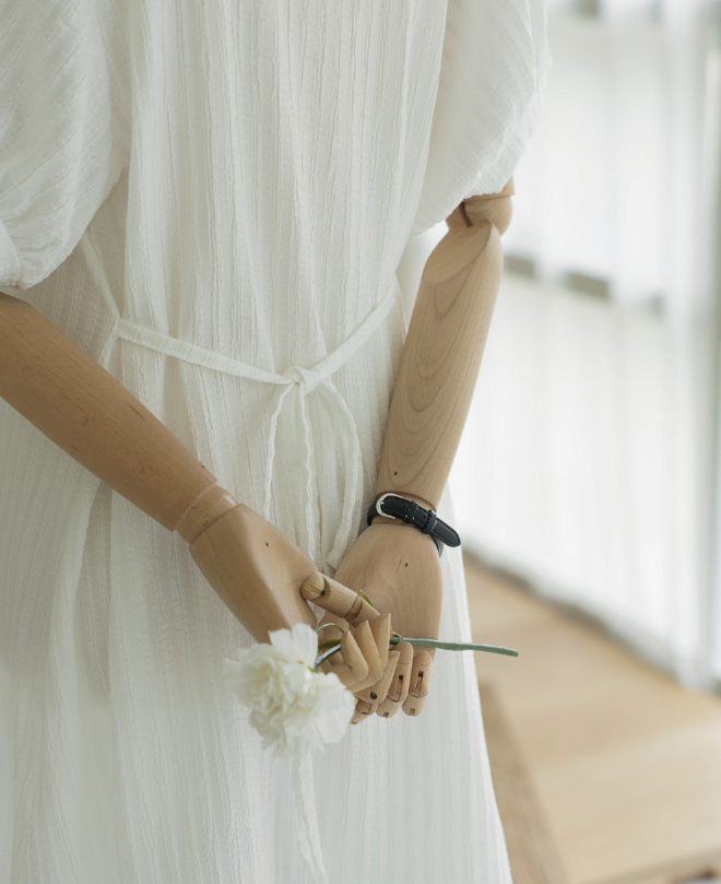 데이트, 격식 자리, 결혼식 등 다양한 자리에서 눈에 띄지 않으면서도 세련된 매력을 자아내는 블라우스입니다. 특히 카라 라인과 볼륨 있는 소매라인이 더해져 고급스럽고 우아한 느낌을 살려줍니다. 5부 기장의 소매와 섬세한 핀턱 디테일은 러블리하면서도 페미닌 한 무드를 강조합니다.