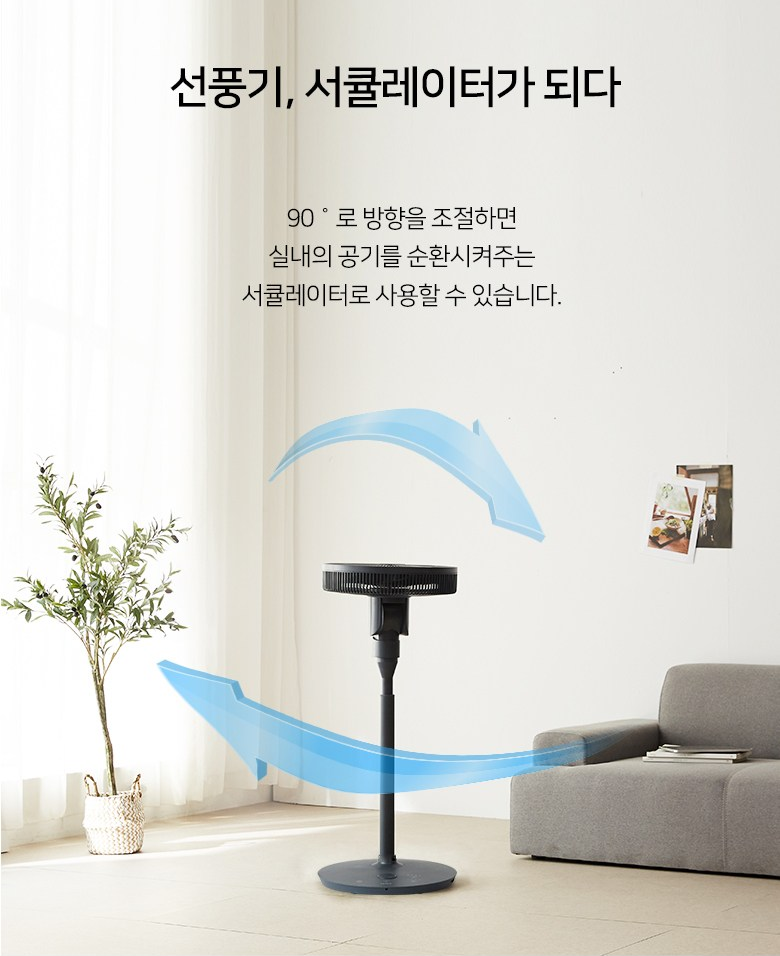 - 세분화 된 각도 조절로 3D 입체바람, 선풍기와 같이 좌우 수동 조절 가능