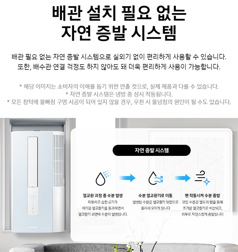 - 물통 비울 필요 없이 자체 수분 증발하는 편리한 에어컨