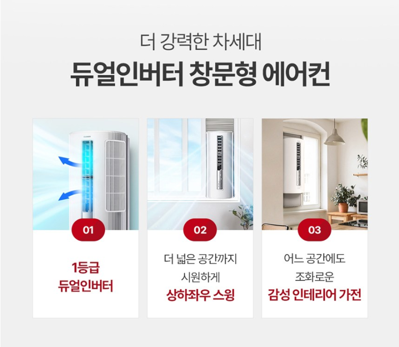 - 듀얼인버터 창문형 에어컨, 에너지효율등급 1등급