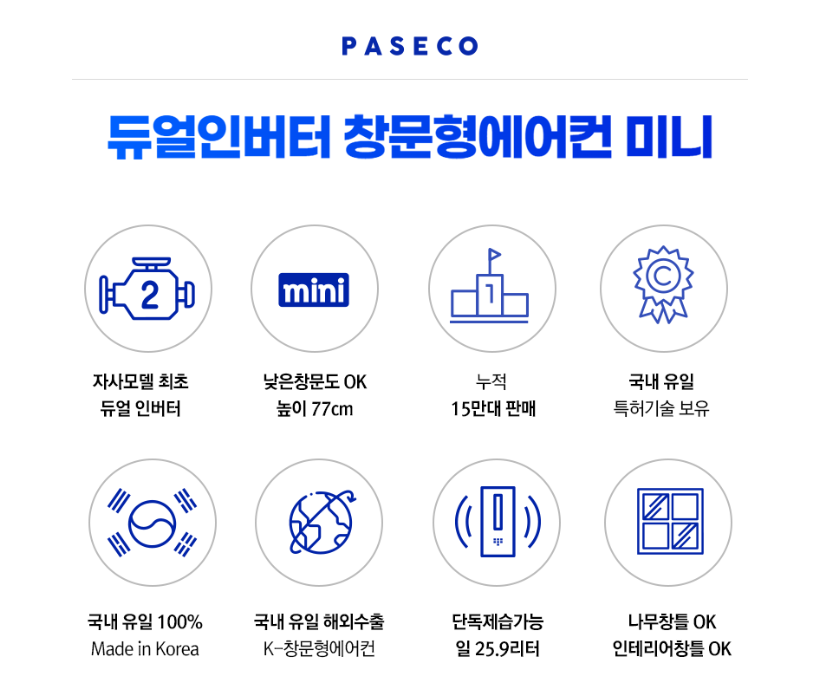 파세코 듀얼인버터 미니 창문형 에어컨